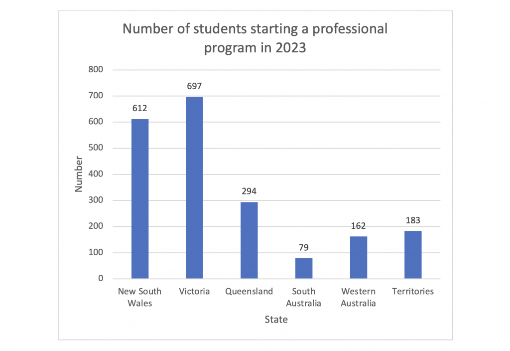 Figure 3: Number of students commencing a professional program in 2023 by State by year.